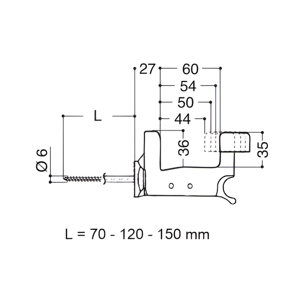 • Lunghezza vite: 70 mm – 120 mm – 150 mm