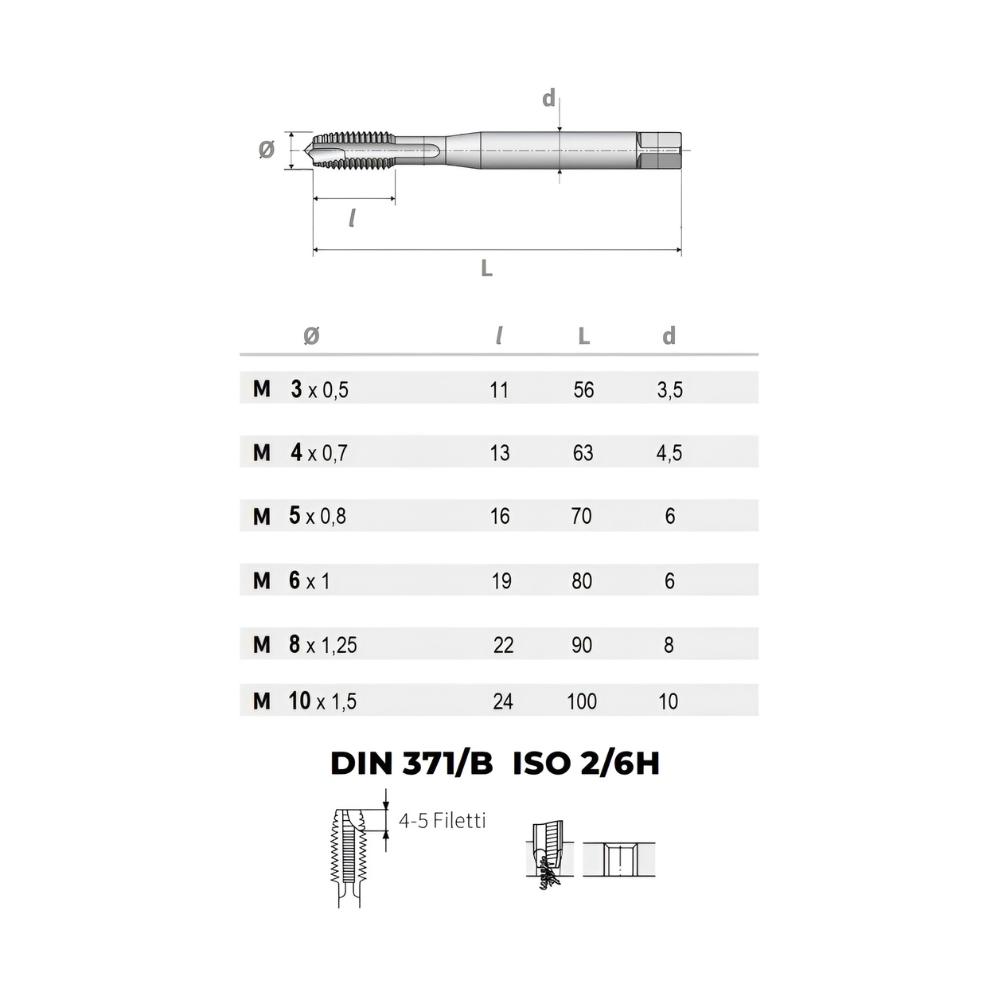 Krino Maschio a macchina DIN 371 in acciaio Hss per fori passanti, filettatura metrica ISO a passo grosso