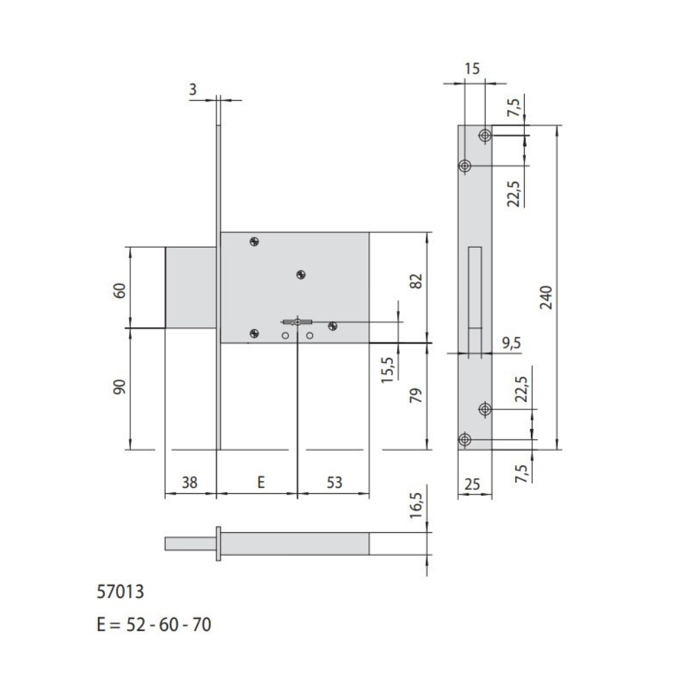 Serratura da infilare a doppia mappa per porte in ferro e inferriate Cisa 57013